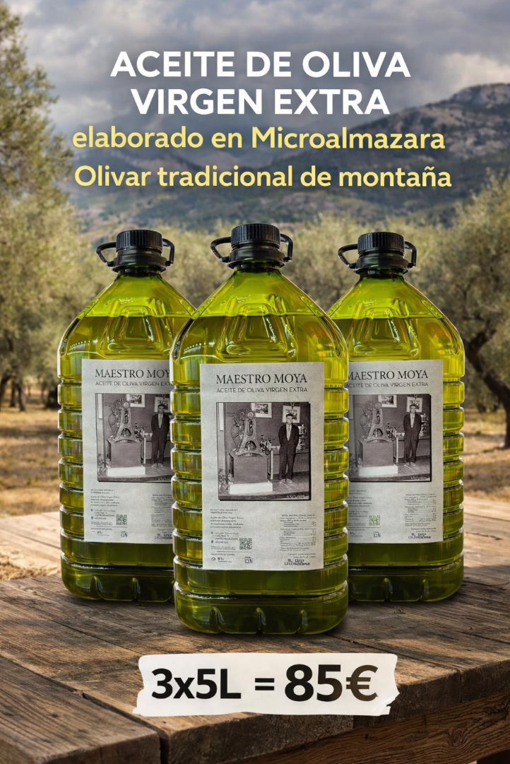 Sé el primero en valorar “AOVE Maestro Moya (Selección Gourmet) Cosecha Noviembre 2025 – 3 X 5 L”